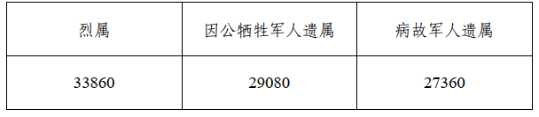 烈士遺屬、因公犧牲軍人遺屬、病故軍人遺屬定期撫恤金標準表
