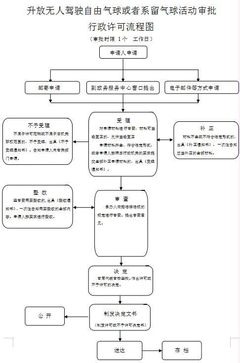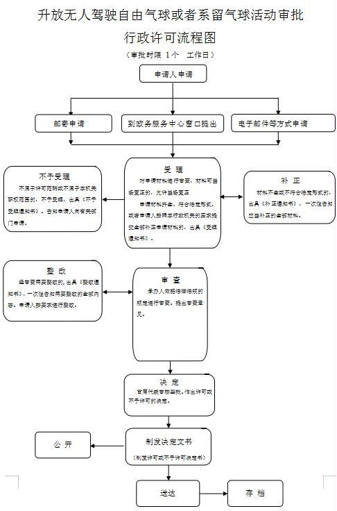 • 標題: 關于升放無人駕駛自由氣球或者系留氣球活動審批等內容的流程圖