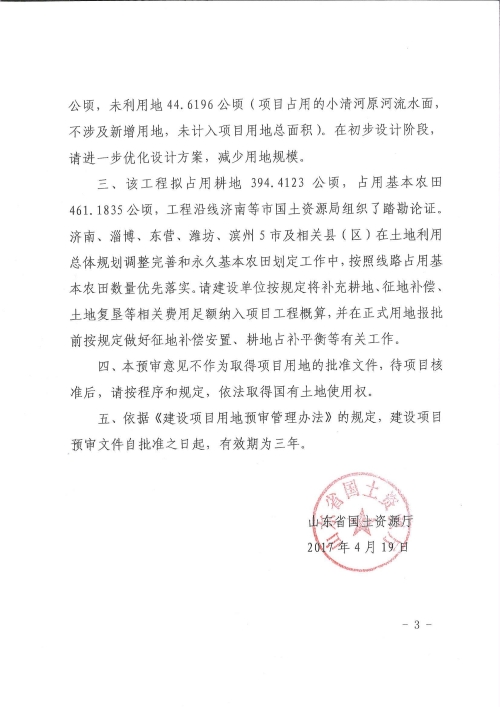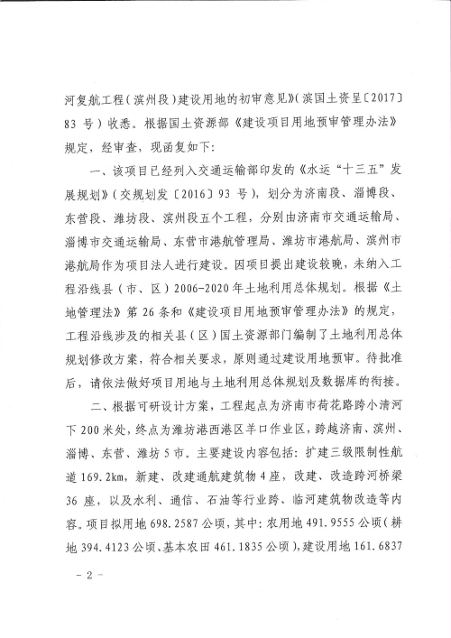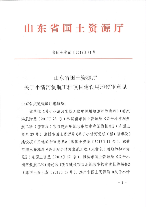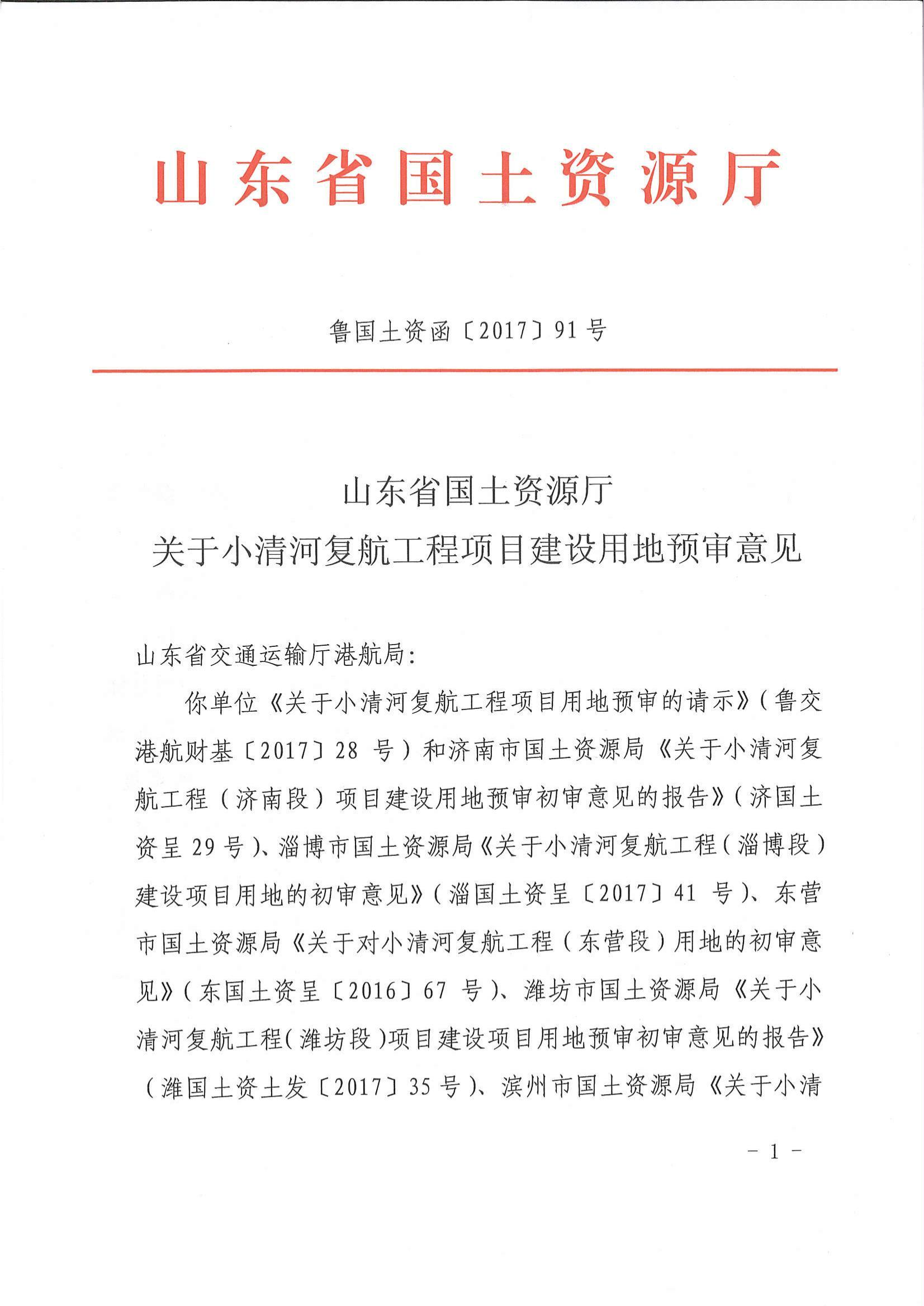 關(guān)于小清河復(fù)航工程用地預(yù)審