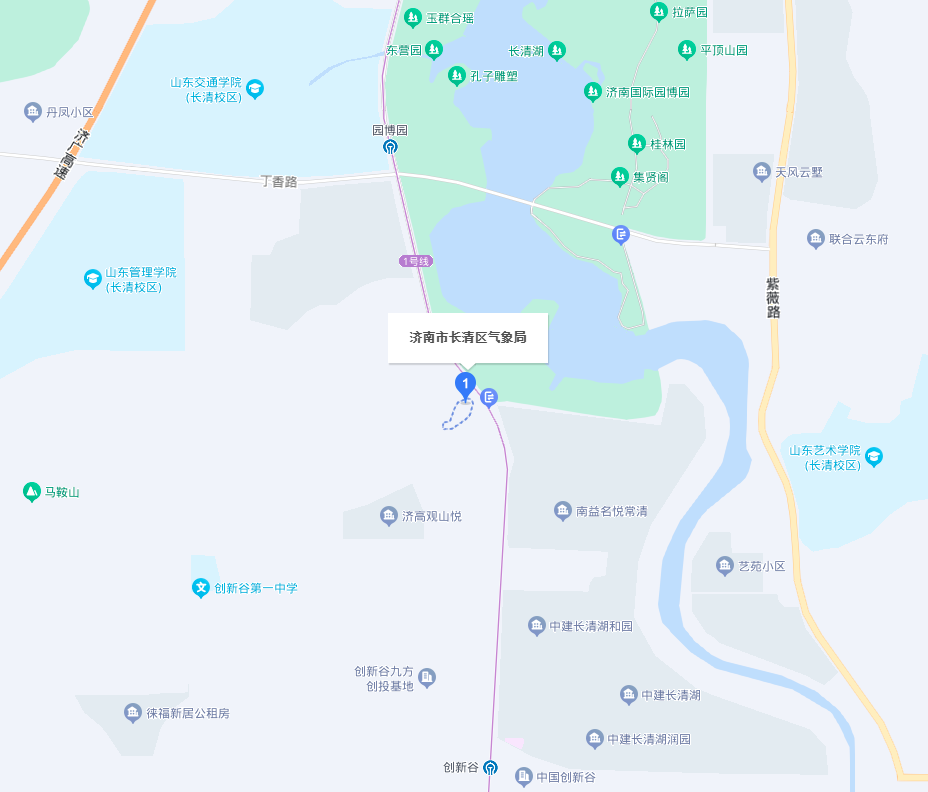 長清國家基本氣象站現址位于長清區海棠路6755號馬鞍山山頂,東經116°48′,北緯36°31′,海拔高度98.9米。主要承擔地面氣象要素觀測業務。已建有氣壓、氣溫、地溫、濕度、風向、風速、降水、能見度、雪深、日照、凍土、天氣現象等自動氣象探測系統及配套通信傳輸設施。