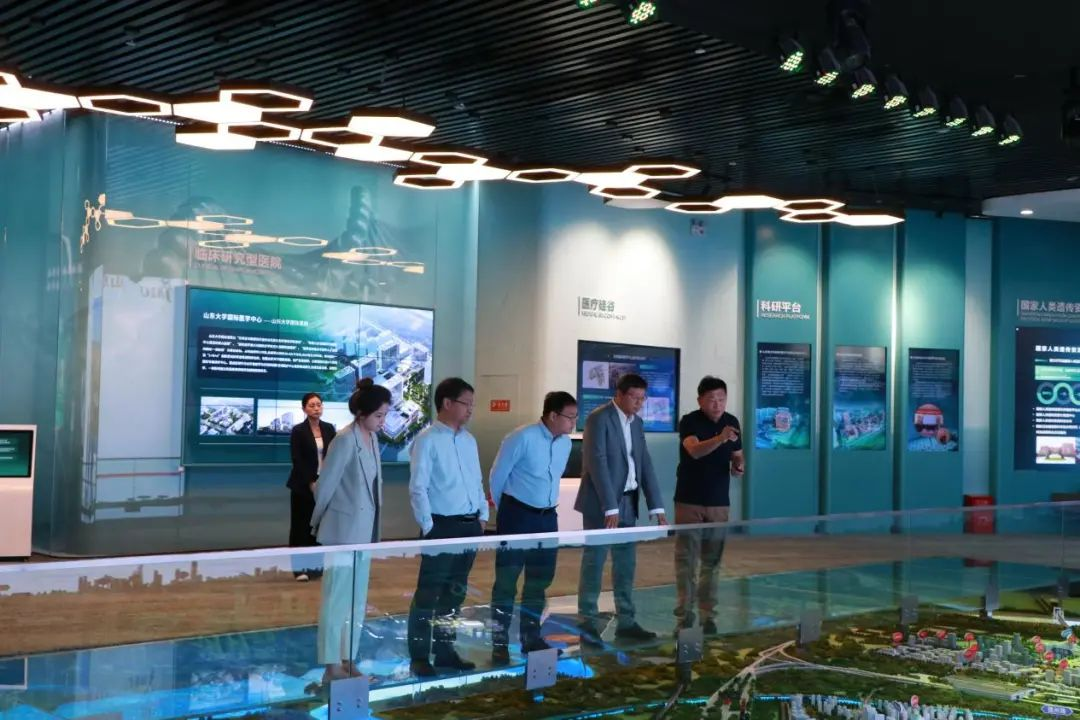 劉道志一行首先參觀了醫學中心綜合展廳,聽取園區整體規劃設計、功能布局、項目建設、平臺打造等相關情況介紹。隨后車覽醫療硅谷片區項目,了解樹蘭(濟南)醫院、山東第一醫科大學、山東中醫藥大學國際眼科與視光醫學院項目進展情況,并參觀濟南精準醫學產業園。