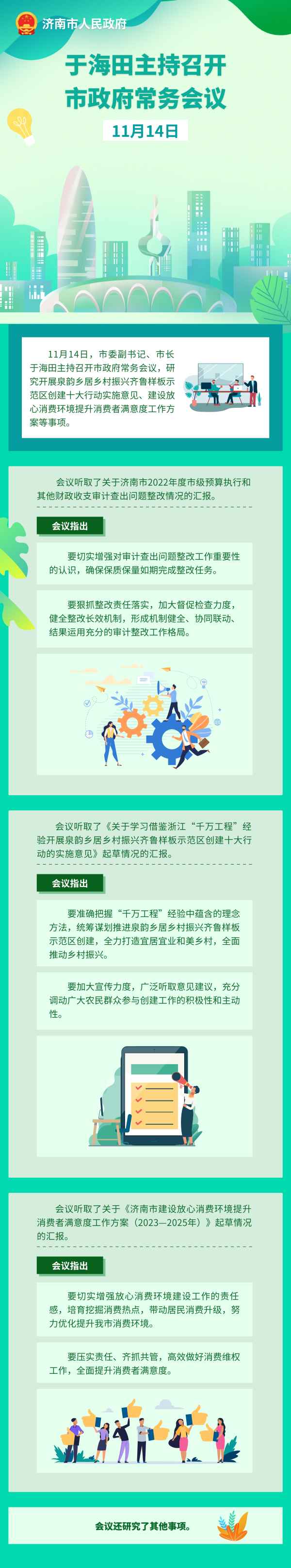 11月14日,市委副書記、市長(zhǎng)于海田主持召開市政府常務(wù)會(huì)議,研究開展泉韻鄉(xiāng)居鄉(xiāng)村振興齊魯樣板示范區(qū)創(chuàng)建十大行動(dòng)實(shí)施意見、建設(shè)放心消費(fèi)環(huán)境提升消費(fèi)者滿意度工作方案等事項(xiàng)。