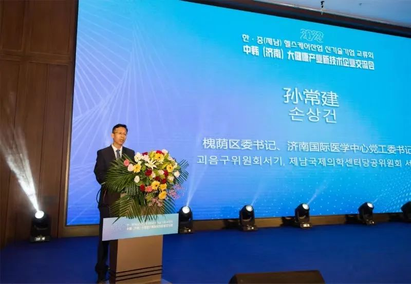 孫常建在致辭時著重就槐蔭區投資潛力、投資價值、投資環境做了重點介紹,并表示,此次交流活動既是今年11月初在韓國首爾舉辦的2023中國(濟南)—韓國保健醫療合作交流會成果的延續,又是雙方聚焦務實合作邁出的新步伐,中韓企業在濟南再續前緣,交流新技術成果,共同探討醫療健康產業的高質量發展和合作機遇。