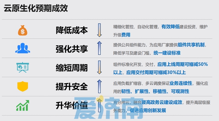 為推廣應用云原生技術,山東省自2022年以來陸續發布一系列關于云原生數字化轉型的政策文件——2022年1月《2022年全省大數據局工作要點》,指出要提升云服務層級,建設共性組件、優秀組件庫,打造數字政府生態運營體系,支撐各級各部門政務信息系統敏捷開發和快速迭代;9月發布的《數字賦能增效2022年行動計劃),明確要優化政務云節點架構布局,加強微服務、容器等云原生服務供給能力,推進云原生技術在政務領域的應用;在2023年1月的《山東省數字政府建設實施方案》中,提出要在2023年年底前,推廣應用云原生技術,賦能政務信息系統開發建設和部署。