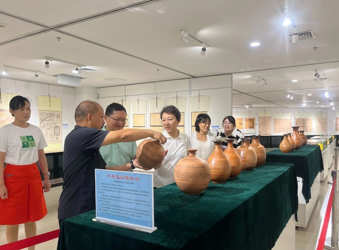 上午,在濟陽區博物館館長王邕帶領下,課題組成員參觀了三官廟漢墓博物館、濟北手造中心、濟陽區博物館,實地了解濟陽區歷史考古發現及文化資源的保護利用現狀,深度了解濟陽黑陶、刻瓷、柳編、剪紙、黃河泥塑等非物質文化遺產,大家對黃河文化研究的內容、范疇、領域以及具體表現形式有了更為直接、更為直觀的認識和感受。