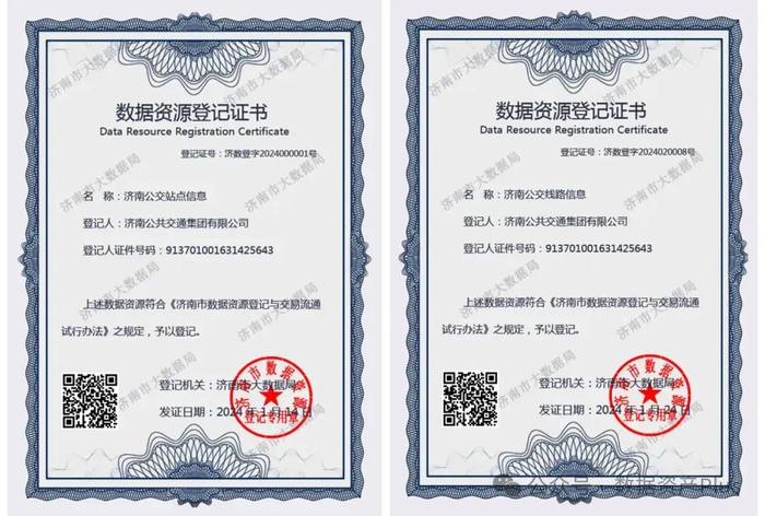 去年8月,濟南公交著手開展數據資源入表準備,《暫行規定》正式施行后,在濟南市財政局、市大數據局、市國資委等部門的共同指導下,率先完成了“濟南公交站點信息”確權登記備案,取得濟南市“001號”數據資源登記證書。