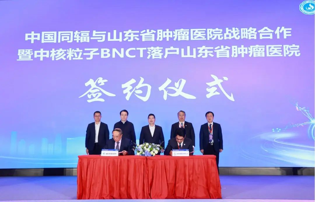 開幕式上舉行了中國同輻與山東第一醫科大學附屬腫瘤醫院戰略合作暨中核粒子BNCT落戶山東第一醫科大學附屬腫瘤醫院簽約儀式。在陳平副省長、李國祥書記、徐民副主任及中核集團黨組成員、副總經理張凱、中核集團總經理助理、首席網絡安全官孟琰彬的見證下,于金明院士與中國同輻總經理、黨委副書記張軍旗代表雙方共同簽署戰略合作協議。