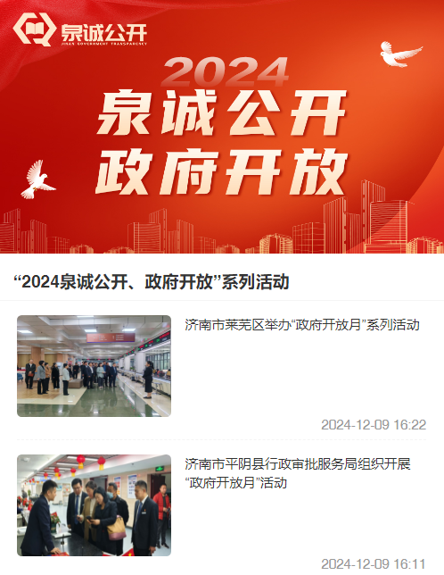 按照《2024年山東省政務公開工作要點》(魯政辦發〔2024〕2號)工作要求,結合濟南市實際,市政府辦公廳出臺了《2024年濟南市政務公開工作要點》(濟政辦發〔2024〕6號),進一步明確2024年濟南市政務公開工作的總體要求、重點任務和責任分工,要求準確把握新時代政務公開新形勢、新任務、新要求,更好發揮政務公開功能作用,以高質量政務公開推動經濟社會高質量發展;通過制定責任清單,進一步細化任務執行的具體步驟與時間節點,對全年政務公開工作核心任務和工作目標進行分解和明確;通過持續深化政企政民互動,讓政企政民溝通交流更順暢,進一步推動政務公開工作向縱深發展;通過建立健全監督機制,進一步加強監督檢查,嚴格落實責任追究制度,確保工作任務得到有效執行與落實。