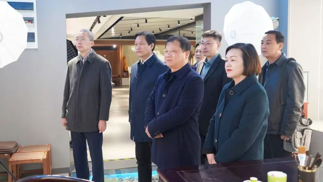郭小野帶領調研組一行在濟南英雄山文化市場先后參觀了國家級非遺龍泉青瓷、寶劍特色展廳和山水泉城青瓷壁畫、1992英雄山文創園,聽取了市場建設管理運營情況匯報,就當前社屬企業改革發展及市場建設等問題進行了深入交流。考察組對濟南英雄山文化市場濃厚的文化氣息給予了高度贊揚,對市場在創新經營業態、打造精品項目、走多元化發展道路的經驗做法給予了高度評價。