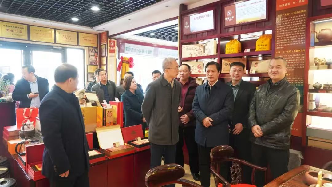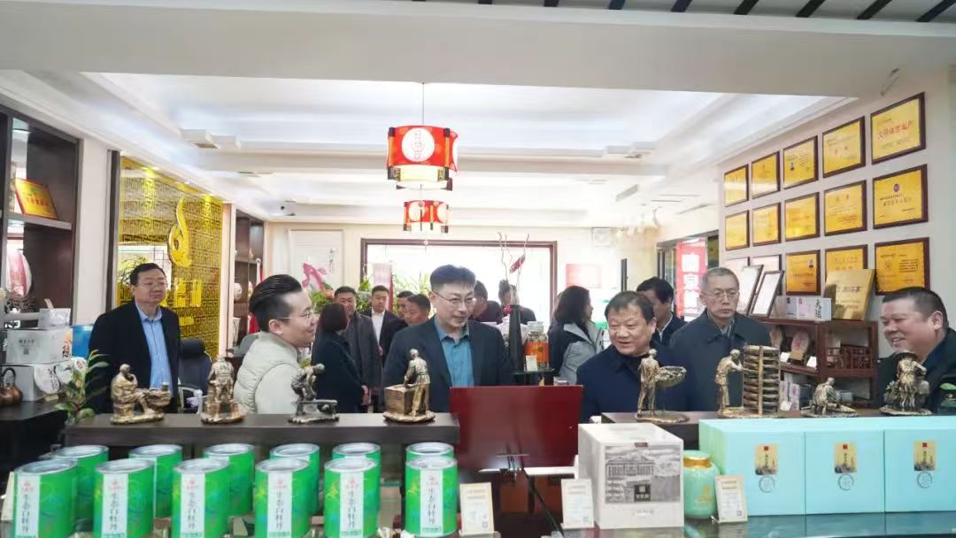 在濟南茶葉批發市場,調研組一行先后參觀了聚茗閣、茶文化推廣中心等特色經營區域,實地走訪了湘益茯茶和泉德利茗茶等店鋪,深入了解了商戶經營情況并參觀了濟南茶葉博物館。博物館內,豐富的茶葉歷史文物、詳細的茶葉知識介紹,讓調研團成員對濟南乃至山東的茶產業發展歷程有了更加全面深入的了解。