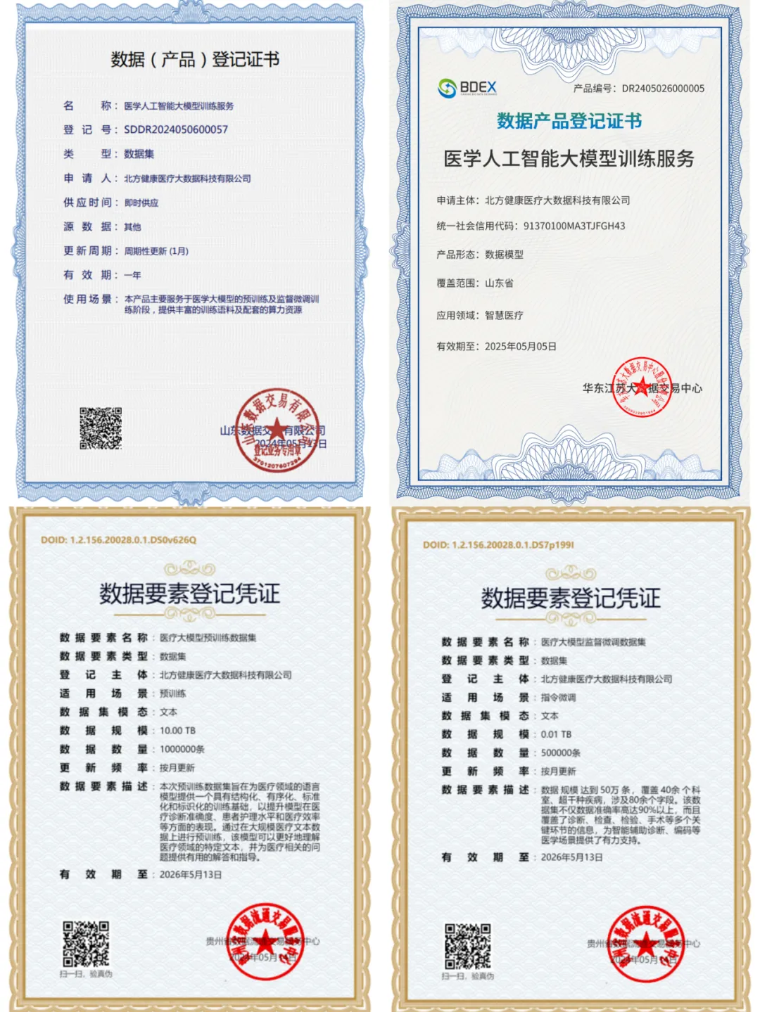 目前,該數(shù)據(jù)集衍生出的醫(yī)療大模型預(yù)訓(xùn)練數(shù)據(jù)集、監(jiān)督微調(diào)數(shù)據(jù)集及醫(yī)學(xué)事件知識(shí)圖譜等數(shù)據(jù)產(chǎn)品,獲得全國(guó)首張醫(yī)學(xué)大模型領(lǐng)域的數(shù)據(jù)知識(shí)產(chǎn)權(quán)登記證書(shū),并入選國(guó)家知識(shí)產(chǎn)權(quán)局全國(guó)十大數(shù)據(jù)知識(shí)產(chǎn)權(quán)典型案例,已在山東、北京、貴陽(yáng)、江蘇等我國(guó)多個(gè)數(shù)據(jù)交易所合規(guī)上架,賦能醫(yī)療機(jī)構(gòu)與科研單位,加速醫(yī)療數(shù)據(jù)從資源到價(jià)值的全鏈條轉(zhuǎn)化,引領(lǐng)行業(yè)協(xié)同創(chuàng)新。