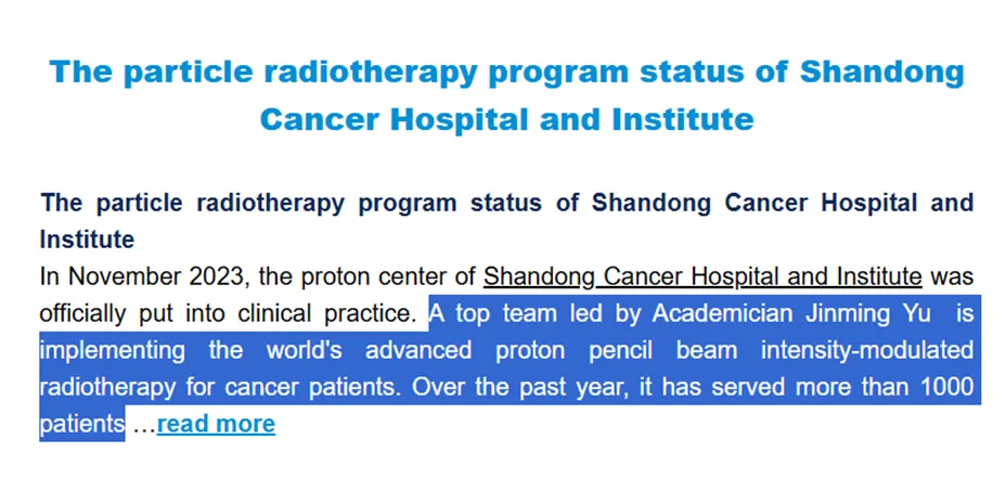 《山東省腫瘤防治研究院粒子放療項(xiàng)目現(xiàn)狀》專題報(bào)道引言截圖
