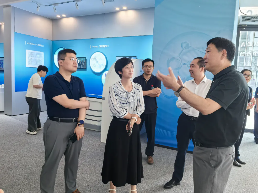 李鑫一行首先來到醫學中心綜合展廳,全面了解醫學中心整體規劃建設、戰略定位及產業發展等情況。隨后,車覽醫療硅谷和山東第一醫科大學,實地考察了濟南微生態生物醫學省實驗室、濟南精準醫學產業園,重點了解濟南財投與醫學中心成立的基金投資落地的項目情況,并到韓國大健康新技術體驗館了解醫學中心對韓合作交流及產業發展情況。