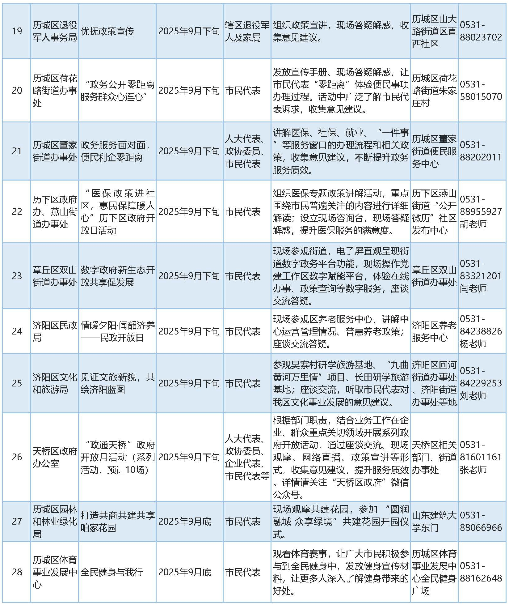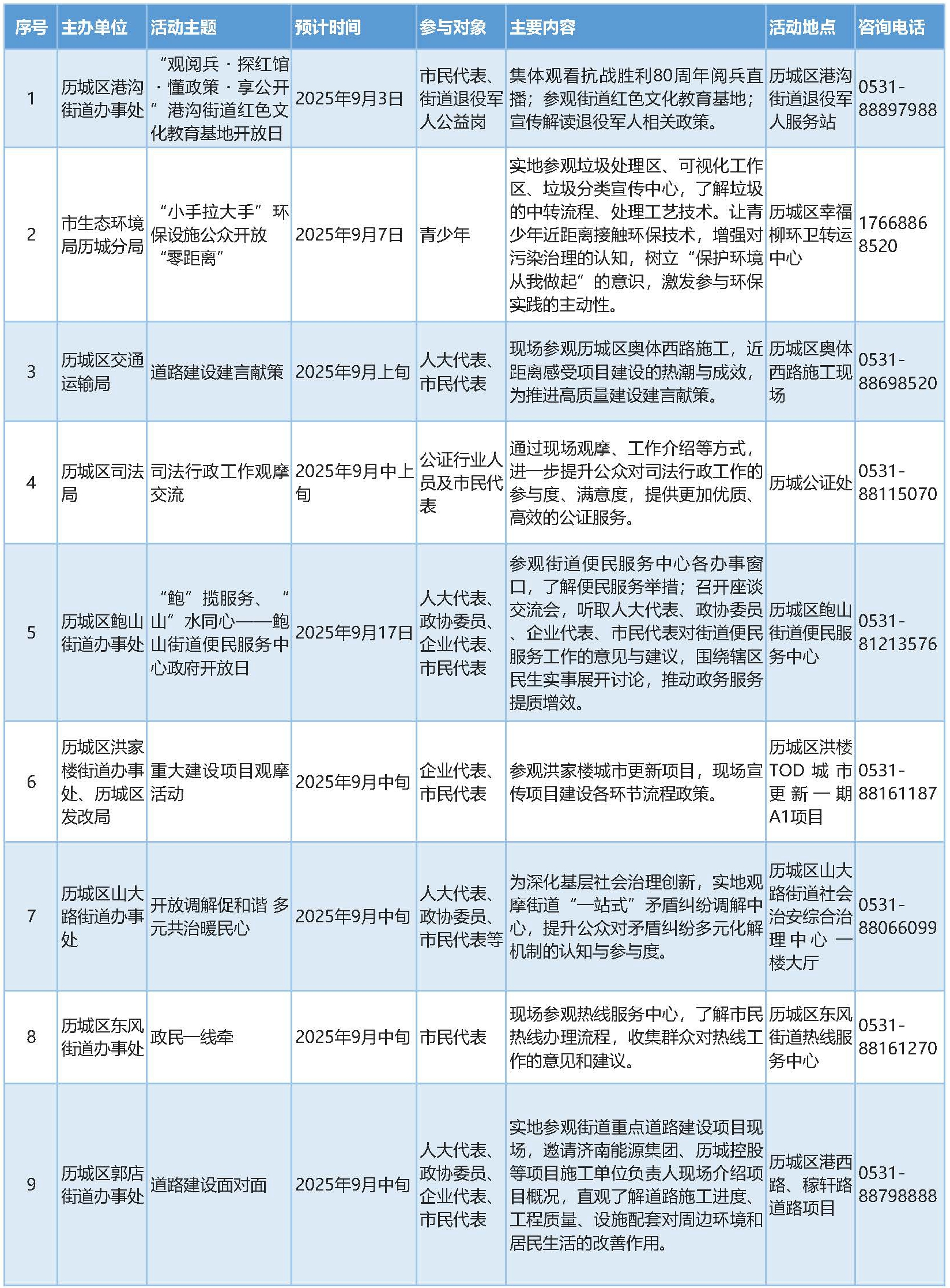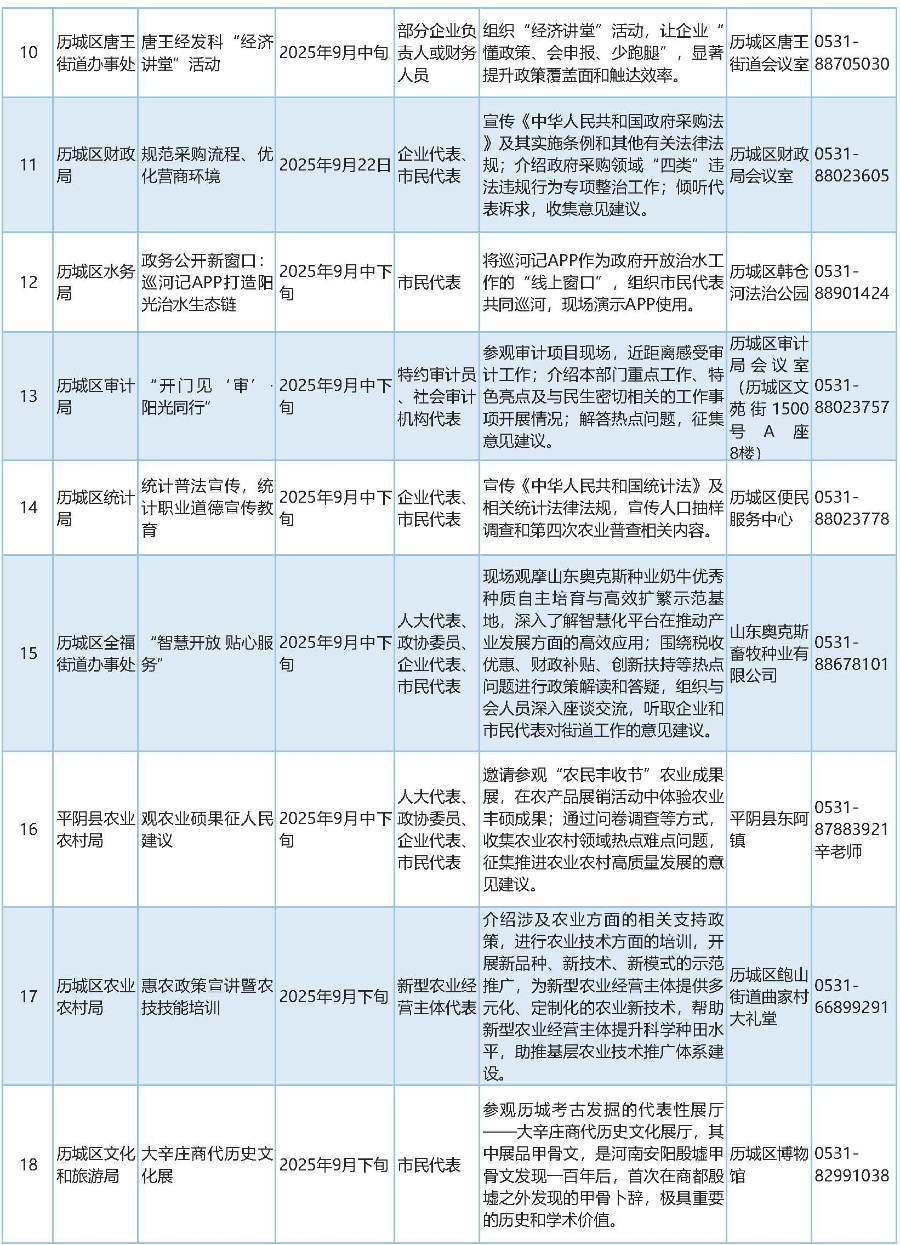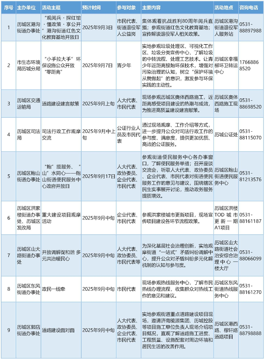 2025年9月濟南市政府開放活動預告